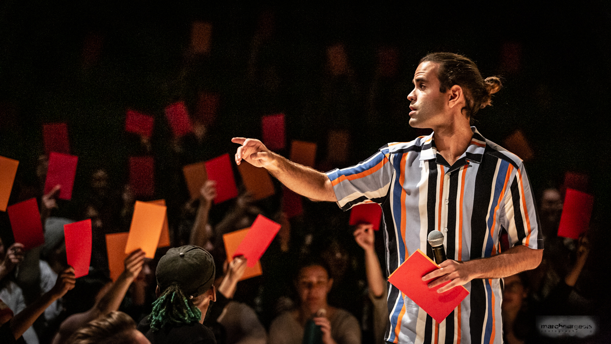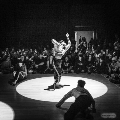 Bouge Anyway est un battle mêlant danse contemporaine et danse urbaine. Hybridation pour le plaisir des yeux, ce tournoi réunit plusieurs équipes de haut calibre, s’affrontant dans des duels où l’improvisation règne en maître. Confrontation amicale où se rencontre le meilleur des deux mondes, c’est une chance exceptionnelle d’assister à une démonstration de savoir-faire unique et d’éloquence du geste. Un DJ, des danseurs épiques, un animateur énergique et un jury de choix sont tous réunis pour vous faire passer une soirée mémorable.